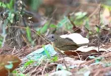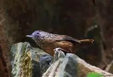 白腹幽鹛,是画眉科幽鹛属鸟类,共有4亚种。雕雄羽色相似。 上体从头到尾包括两题表面概为微椎褐色,两翅和尾沾更多红色。眼先和颚上灰褐色,耳覆羽褐色具族色羽轴纹,颈与背同色。额、喉白色具矢状黑斑,…全部>>