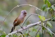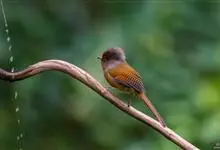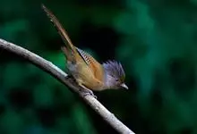 栗额斑翅鹛是噪眉科、斑翅鹛属中型鸟类,体长20-23厘米。头顶具浓密的羽冠,前额栗棕色,头顶灰褐色。上体棕褐色,两翅棕褐色具黑色横斑,翅基外缘有一黑斑,尾呈凸状,棕褐色具黑色横斑。下体棕褐色,…全部>>