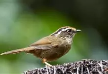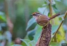 褐胁雀鹛,是莺科、雀鹛属的鸟类。褐胁雀鹛是小型鸟类,体长13-15厘米。头顶棕褐色,黑色侧冠纹和宽阔的白色眉纹,眼先黑色。上体包括两翅和尾橄榄褐色。颏、喉、胸、腹白色,腹和胸沾皮黄色,两胁橄榄褐色,…全部>>