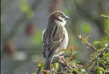 家麻雀:共有13个亚种。是小型鸟类,体长14-16厘米。背栗红色具黑色纵纹,两侧具皮黄色纵纹;颏、喉和上胸黑色,脸颊白色,其余下体白色,翅上具白色带斑。雄鸟与树麻雀的区别在顶冠及尾上覆羽灰色,耳无黑…全部>>