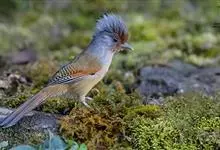 栗额斑翅鹛是噪眉科、斑翅鹛属中型鸟类,体长20-23厘米。头顶具浓密的羽冠,前额栗棕色,头顶灰褐色。上体棕褐色,两翅棕褐色具黑色横斑,翅基外缘有一黑斑,尾呈凸状,棕褐色具黑色横斑。下体棕褐色,…全部>>