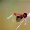 红梅花雀小型鸟类,体长9-10厘米。雄鸟通体朱红色,背、肩、胸等满布白色小斑点,两翅和尾黑褐色均具白色端斑,嘴红色,脚蜡黄色。雌鸟上体淡褐色或赭褐色,翅上中覆羽、大覆羽和内侧飞羽末端具白色斑点,…全部>>