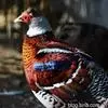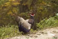 黄腹角雉:是鸟纲、雉科中国特产的一种鸟类。体长约50-65厘米。雄鸟上体栗褐色,满布具黑缘的淡黄色圆斑。头顶黑色,具黑色与栗红色羽冠。飞羽黑褐带棕黄斑。下体几纯棕黄,因腹部羽毛呈皮黄色,…全部>>