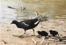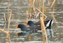 黑水鸡:是鹤形目、秧鸡科的鸟类,共有12个亚种。中型涉禽,体长24-35厘米。嘴长度适中,鼻孔狭长;头具额甲,后缘圆钝;嘴和额甲色彩鲜艳。翅圆形,第2枚初级飞羽最长,或第2枚和第3枚初级飞羽等长,…全部>>