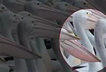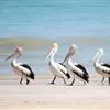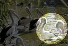 澳大利亚鹈鹕是一种大型涉禽,体重达13千克。生活于沿海及河川、湖泊等处。飞行力强而悠逸,常群飞群栖,极善于游泳,但不会潜水。游泳时张口捕鱼,将捕得的鱼兜入喉囊内。有时结群,排成长线,…全部>>