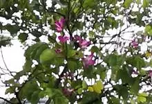 羊蹄甲,别名紫花羊蹄甲、玲甲花,是豆科羊蹄甲属的一种常绿乔木或灌木。树冠开展,枝桠低垂;树皮灰色至暗褐色,近光滑。枝幼时微被灰色短柔毛,后毛脱落;叶硬纸质,近圆形,基部浅心形,…全部>>
