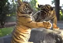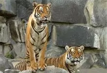 印度支那虎:简称印支虎。是老虎的一个亚种。雄性平均体重185千克,体长2.7米。与孟加拉虎相比,它们的体形较小,毛色更深,身上的条纹更短、更窄;而胃部、咽喉和两颊有较大的白色斑痕。…全部>>