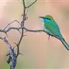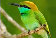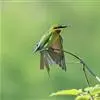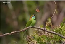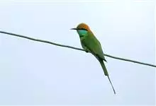 绿喉蜂虎是佛法僧目、蜂虎科的小型鸟类,共有9个亚种。身长22-25厘米,翼展29-30厘米,体重15-20克。喉绿色,额部、头顶至上背为锈红色,其余上体均为亮绿色。中央尾羽延长且端段狭细,…全部>>