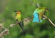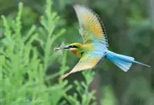 蓝颊蜂虎:是蜂虎科、蜂虎属的鸟类,共有2个亚种。体长27-33厘米,翼展46-49厘米,体重38-50克。嘴形细长而下弯,先端尖,…全部>>