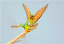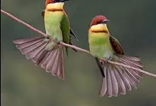 蓝颊蜂虎:是蜂虎科、蜂虎属的鸟类,共有2个亚种。体长27-33厘米,翼展46-49厘米,体重38-50克。嘴形细长而下弯,先端尖,…全部>>