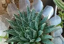 条纹十二卷 Haw.)是芦荟科十二卷属植物,为多年生肉质草本植物。植株高度10-15厘米,其呈莲座状生长;叶片紧密轮生在茎轴上,柔软多汁,呈长三角状披针形,极肥厚;叶面光滑、扁平,色深绿;叶背突起,…全部>>