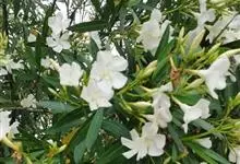 白花夹竹桃是夹竹桃科、夹竹桃属植物夹竹桃的栽培品种。常绿直立大灌木,枝条灰绿色;嫩枝条具稜,被微毛,老时毛脱落。叶3-4枚轮生,下枝为对生,叶面深绿,叶背浅绿色;侧脉纤细平行与中脉成直角;叶柄扁平,…全部>>