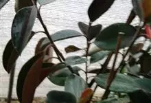印度榕,别名橡皮树,桑科榕属多年生常绿乔木植物。株高30米;树皮灰白色,平滑;叶厚革质,长圆形或椭圆形,叶柄粗,托叶膜质,深红色;榕果成对生于落叶枝叶腋,卵状长椭圆形,…全部>>