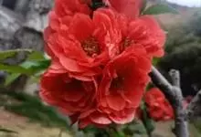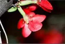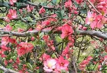 贴梗海棠Nakai)是蔷薇科、木瓜海棠属植物。落叶灌木,高达2米,枝条直立开展,有刺。叶片卵形至椭圆形,稀长椭圆形,长3-9厘米,宽1.5-5厘米。花先叶开放,3-5朵簇生于二年生老枝上。…全部>>