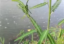 合萌,别名田皂角、水松柏、水槐子、水通草,中药名:梗通草。豆科一年生草本或亚灌木状植物,茎直立,叶对生,总状花序,腋生,花萼膜质,花冠淡黄色,子房扁平,线形。种子黑棕色,肾形,花果期7~10月。…全部>>