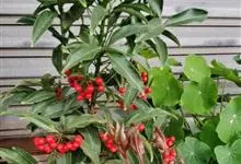 朱砂根是报春花科紫金牛属植物,又名铁凉伞、红铜盘、百两金、大罗伞、开喉箭等,为常绿小灌木,高1~2米,茎粗壮,无毛,除侧生特殊花枝外,无分枝,叶片革质或坚纸质,椭圆形、椭圆状披针形至倒披针形,…全部>>