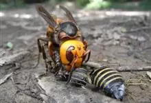 虎头蜂,又名黄脚胡蜂、黄马蜂,是膜翅目胡蜂科胡蜂属昆虫。虎头蜂前胸背板侧面具横皱,后足胫节长刚毛稀少,颅顶黑色或黄褐色,腹部第4背板端部常有1条宽黄带,腹部末端有螫针,连接着毒腺。因为头大得像老虎,…全部>>