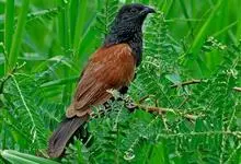 褐翅鸦鹃,是鹃形目鸦鹃科鸦鹃属的鸟类。褐翅鸦鹃的身体为黑色;头颈和胸带蓝紫色金属光泽并具黑亮的羽干纹,下胸至腹部泛金属绿光泽;两翼和肩部为棕栗色,外侧飞羽具暗色羽端,尾羽闪铜绿色光泽;虹膜赤红色,…全部>>