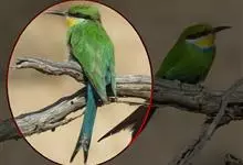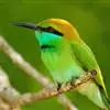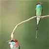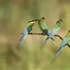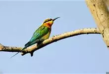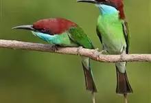 蓝颊蜂虎:是蜂虎科、蜂虎属的鸟类,共有2个亚种。体长27-33厘米,翼展46-49厘米,体重38-50克。嘴形细长而下弯,先端尖,…全部>>