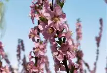 榆叶梅,是蔷薇科李属灌木稀小乔木植物。榆叶梅枝条开展,具多数短小枝;叶片宽椭圆形至倒卵形,先端短渐尖,叶边具粗锯齿或重锯齿;花果期4-7月;花先于叶开放;雄蕊短于花瓣,花柱稍长于雄蕊;果实近球形,红色,…全部>>