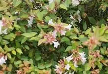 大花六道木,忍冬科六道木属半常绿矮生灌木。其幼枝为红褐色,有短柔毛;叶片倒卵形为墨绿色,有光泽;花粉钟形为白色;圆锥花序,开花繁茂;花期长,5~11月持续开花。…全部>>