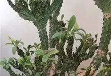 金刚纂,是大戟科大戟属的肉质灌木状小乔木。茎圆柱状,上部多分枝,叶片互生,少而稀疏,顶端钝圆,基部渐狭;花序二歧状腋生,苞叶膜质,总苞阔钟状,裂片半圆形,边缘具缘毛,雄花多枚;花期6-9月。…全部>>