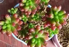 虹之玉是景天科景天属的多肉植物,多年生肉质草本植物。生长速度较快,叶片肉质,呈长椭圆形,约1厘米长,互生。花黄色,星形,秋冬季节或强光照下,叶片部分或全部转为鲜红色。生长适温10~28℃,…全部>>