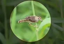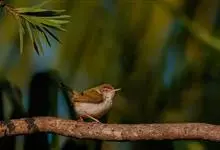 普通缝叶莺,是雀形目鹅科莺亚科缝叶莺属一种。体长10-14厘米,体重7-10克,雄鸟前额棕红,头顶至枕棕橄榄褐,上体橄榄绿染黄,飞羽及尾羽暗褐;繁殖期雄鸟的中央尾羽特形延长,下体淡皮黄白色。…全部>>