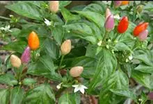 五色椒又名朝天椒,五彩辣椒,为辣椒 变种,味涩。属茄科多年生半木质性植物,常作一年生栽培;江苏沭阳一带有不少花农种植,其株高30厘米—60厘米,分枝多、茎直立,单叶互生;花白色,开花期5月初—7月…全部>>