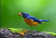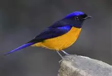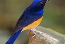 棕腹大仙鹟:体重24-28克,体长15-17厘米,是一种小型的色彩亮丽的鹟。雄鸟上体深蓝,下体棕色,脸黑,额、颈侧小块斑、翼角及腰部亮丽闪辉蓝色。与棕腹仙鹟易混淆,区别在色彩较暗。雌鸟灰褐,…全部>>