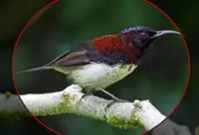 棕脸鹟莺:体长10厘米,是一种色彩亮丽而有特色的莺鸟。头栗色,具黑色侧冠纹。上体绿,腰黄色。下体白,颏及喉杂黑色点斑,上胸沾黄。与栗头鹟莺的区别在头侧栗色,白色眼圈不显著且无翼斑。…全部>>