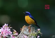 棕腹蓝仙鹟,Niltava vivida,鹟科仙鹟属的一种小型鸣禽,善在空中飞捕昆虫,中等体型18厘米,上体蓝,下体棕色,具黑色眼罩,胸橘黄渐变成臀部的皮黄色。国内分布于四川、云南、西藏和台湾等地。…全部>>
