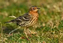 粉红胸鹨:属小型鸣禽,体重18-27克,体长13-18厘米。非繁殖期粉皮黄色的粗眉线明显,背灰而具黑色粗纵纹,胸及两胁具浓密的黑色点斑或纵纹。虹膜暗褐色;嘴黑褐色;下嘴基部色较淡,呈角褐色;跗蹠和趾…全部>>