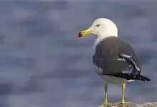 灰背鸥大型水鸟,体长62~69厘米。嘴直,黄色,下嘴先端有红色斑。脚粉红色,头、颈和下体白色,背、肩和翅黑灰色,腰,尾上覆羽和尾白色。冬季头和上胸有褐色纵纹,特别是眼周和后枕较密。飞翔时翅前后缘白色…全部>>