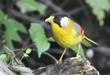 银耳相思鸟小型鸟类,体长14~18厘米。头顶黑色,耳羽银灰色,前额橙黄色;外侧飞羽橙黄色,基部朱红色,极为鲜艳、醒目。尾圆形,尾上、尾下覆羽朱红色,尾暗灰褐色,外侧尾羽橙黄色,其余上体橄榄绿或橄榄黄色。…全部>>