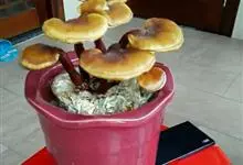 灵芝 P.Karst.)是灵芝科、灵芝属真菌。灵芝子实体大多为一年生,少数为多年生,有柄,小柄侧生。菌盖木质,木栓质,扇形,具沟纹,肾形、半圆形或近圆形,表面褐黄色或红褐色,血红至栗色,…全部>>