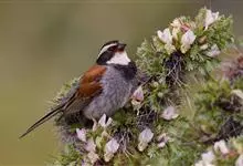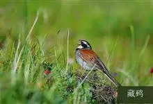 藏鹀:属小型鸣禽。喙为圆锥形,与雀科的鸟类相比较为细弱,上下喙边缘不紧密切合而微向内弯,因而切合线中略有缝隙;体羽似麻雀,此鹀以具有特殊的鲜红栗色背部,及上胸的黑带与下胸的纯灰色等形态特征,…全部>>