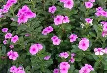 四季梅,又称 日日春、日日新、日春花、长春花、四时春、五瓣梅、雁来红、天天开等。四季不枯萎。夹竹桃科长春花属植物,常绿直立亚灌木。株高30-60厘米,叶对生,长椭圆形,深绿具光泽。花腋生,花冠高脚碟…全部>>