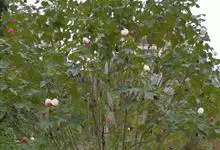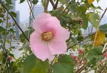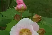木芙蓉,锦葵科木槿属落叶灌木或小乔木。小枝上有细绒毛;叶片为卵状心形,托叶为披针形,常早落;花单生,花萼为钟形,花冠初为白色或淡红色,后逐渐变为深红色;果实为扁球形,有淡黄色的毛附着。花期8到10月。…全部>>