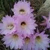 仙人球花 仙人掌科,仙人球属。植株单生或成丛。幼株球形,老株长成圆筒状,高可达75厘米,直径12-15厘米。球体暗绿色,具棱11-12。刺锥状,黑色,长1-1.5厘米。花着生于球体侧方,大型嗽喇叭状…全部>>