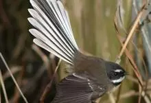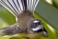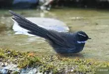 白喉扇尾鹟:是鸟纲、扇尾鹟科的小型鸟类,体重9-14克,体长151-202毫米。通体黑灰色,头部较暗近黑色,颏、喉、眉纹白色,在暗色的头部极为醒目。下体深灰而有别于白眉扇尾鹟,但有个别个体下体色浅。…全部>>