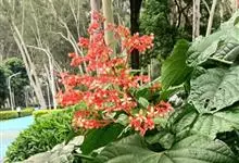 赪桐 Sweet)是唇形科、大青属灌木,高1-4米,叶片圆心形,顶端尖或渐尖,基部心形,边缘有疏短尖齿,表面疏生伏毛,二歧聚伞花序组成顶生,大而开展的圆锥花序,花序的最后侧枝呈总状花序,花萼红色,…全部>>