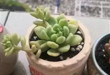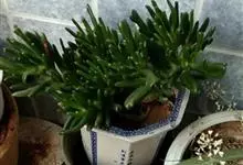筒叶花月,是景天科青锁龙属的多年生草本植物。植株多分株,灌木状,茎较粗壮,圆柱形,表皮灰褐色;叶片肉质,互生,呈圆筒状,簇生于茎或分枝顶端,叶端呈斜截形,截面为椭圆形;花呈星状,淡白色;花期秋季。…全部>>