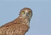短趾雕:体长62-70厘米,体重1.2-2.3千克。它们的颔、颈和胸部上方呈浅棕色。头部浑圆像猫头鹰般,眼睛呈鲜黄色。身体沉重,上体灰褐,下体白而具深色纵纹,喉及胸单一褐色,腹部具不明显的横斑,…全部>>