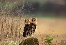 栗鸮:是鸟纲、草鸮科的猫头鹰。体长约29厘米,体重311-360克。是一种中等体型的红褐色鸮。其心形脸庞及时而竖起的“耳朵”与仓鸮甚似。上体红褐而具黑白点斑,下体皮黄偏粉具黑点,脸近粉色。虹膜深褐色,…全部>>