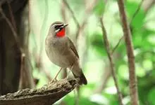 红点颏:是鸟纲、鹟科的鸣禽。又名西伯利亚歌鸲。体长14-17厘米,体重16-27克。雄鸟头部、上体主要为橄榄褐色。眉纹白色。颏部、喉部红色,周围有黑色狭纹。胸部灰色,腹部白色。雌鸟颏部、喉部不呈赤红色,…全部>>