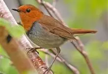日本歌鸲:体型小似麻雀,但羽毛颜色较为美丽。嘴细长,嘴须不发达;翅短圆,上体草黄褐;雄鸟喉部橙棕色,十分明显,雌鸟却转为淡橙黄色。第一枚初级飞羽短狭;尾长约为跗蹠长度的二倍;跗蹠黑褐色,形粗长而健。…全部>>