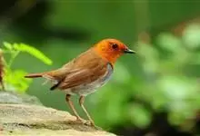 日本歌鸲:体型小似麻雀,但羽毛颜色较为美丽。嘴细长,嘴须不发达;翅短圆,上体草黄褐;雄鸟喉部橙棕色,十分明显,雌鸟却转为淡橙黄色。第一枚初级飞羽短狭;尾长约为跗蹠长度的二倍;跗蹠黑褐色,形粗长而健。…全部>>
