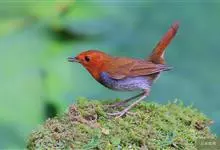 日本歌鸲:体型小似麻雀,但羽毛颜色较为美丽。嘴细长,嘴须不发达;翅短圆,上体草黄褐;雄鸟喉部橙棕色,十分明显,雌鸟却转为淡橙黄色。第一枚初级飞羽短狭;尾长约为跗蹠长度的二倍;跗蹠黑褐色,形粗长而健。…全部>>