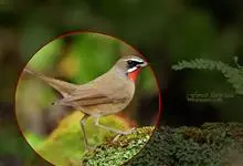 红点颏:是鸟纲、鹟科的鸣禽。又名西伯利亚歌鸲。体长14-17厘米,体重16-27克。雄鸟头部、上体主要为橄榄褐色。眉纹白色。颏部、喉部红色,周围有黑色狭纹。胸部灰色,腹部白色。雌鸟颏部、喉部不呈赤红色,…全部>>